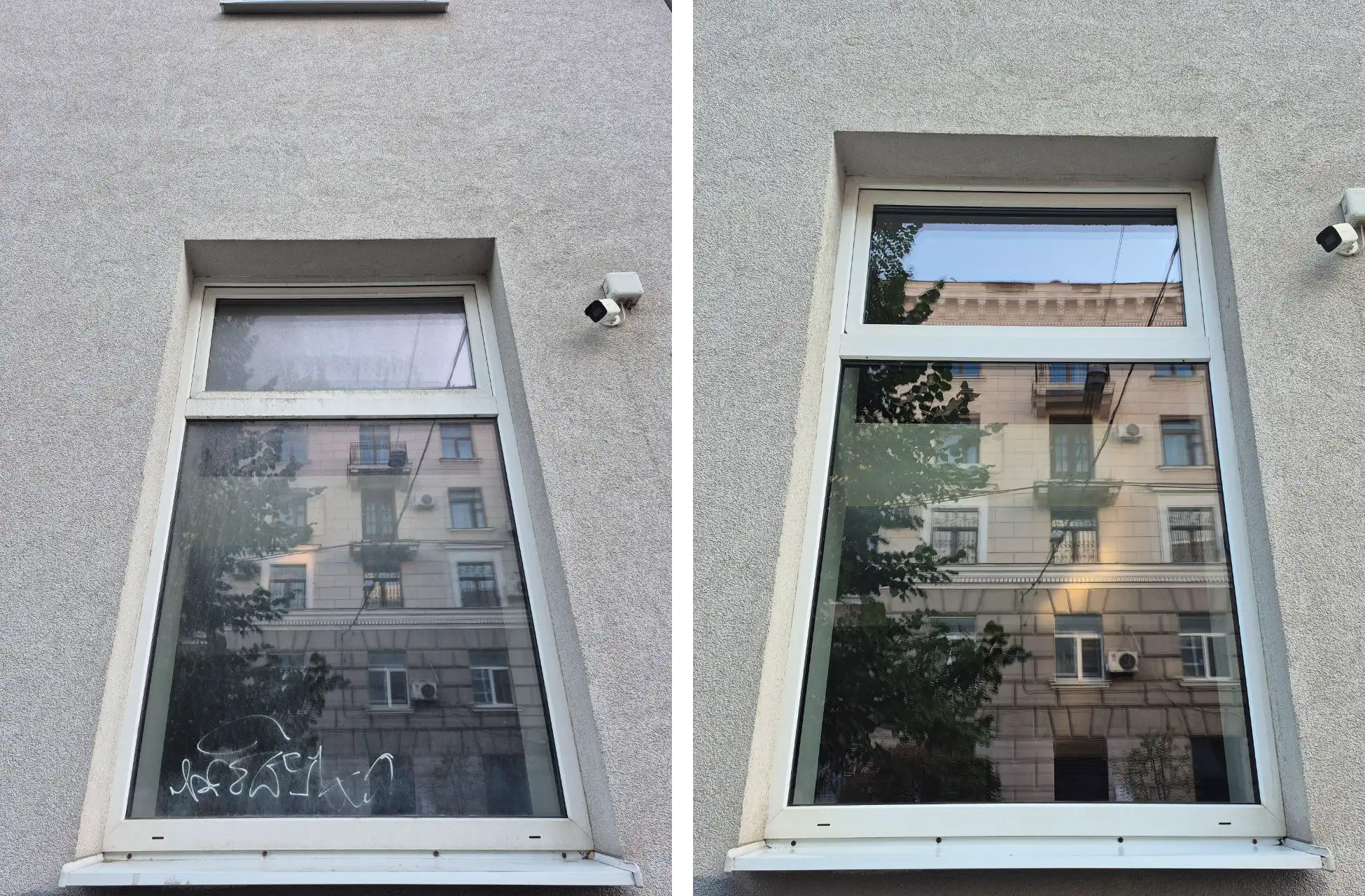 Наші фахівці з легкістю справляються з цим завданням. Використовуючи професійні альпіністські системи страхування, телескопічні штуцери та спеціальні розчини, ми гарантуємо ідеальну прозорість скляних поверхонь будь-якої висоти та конфігурації.